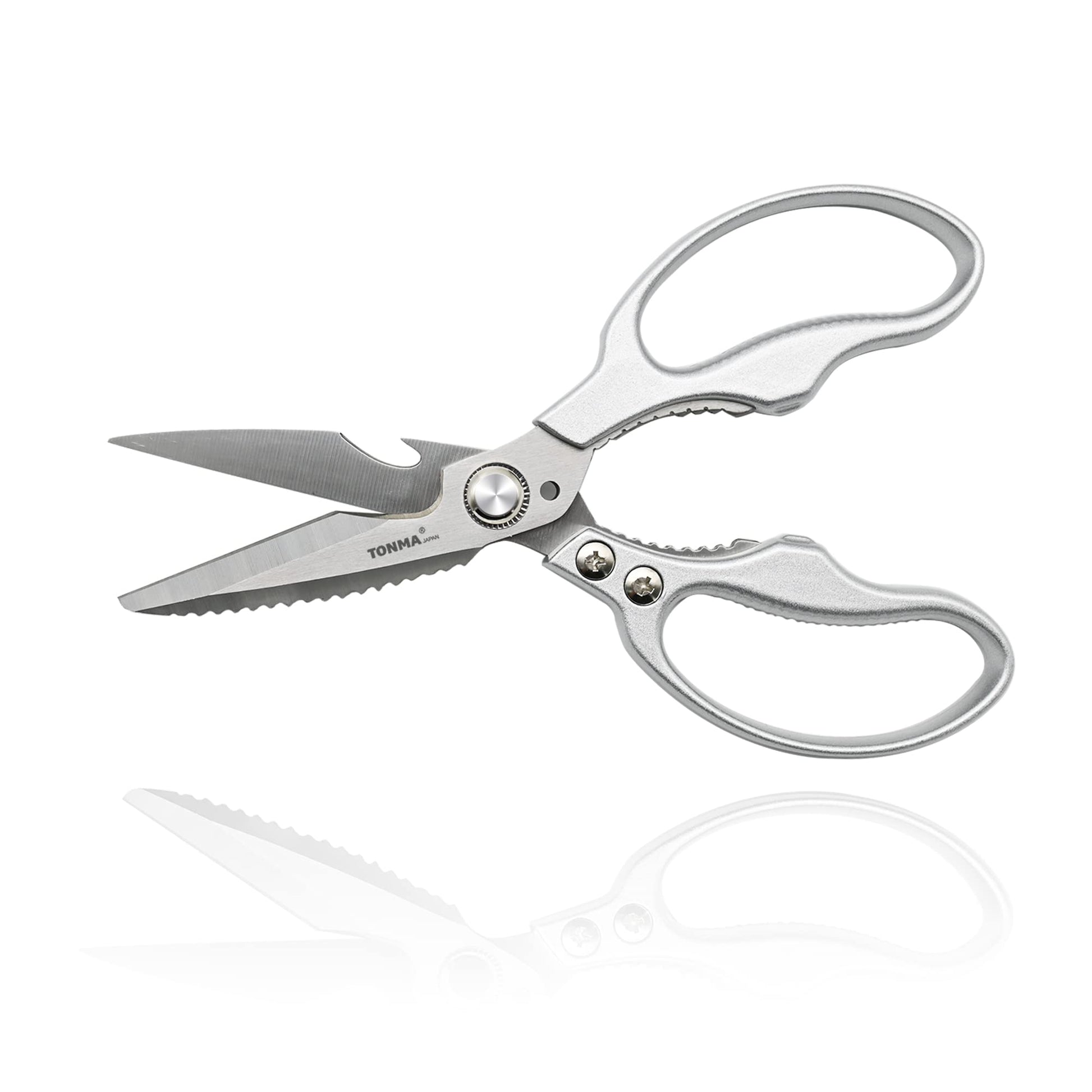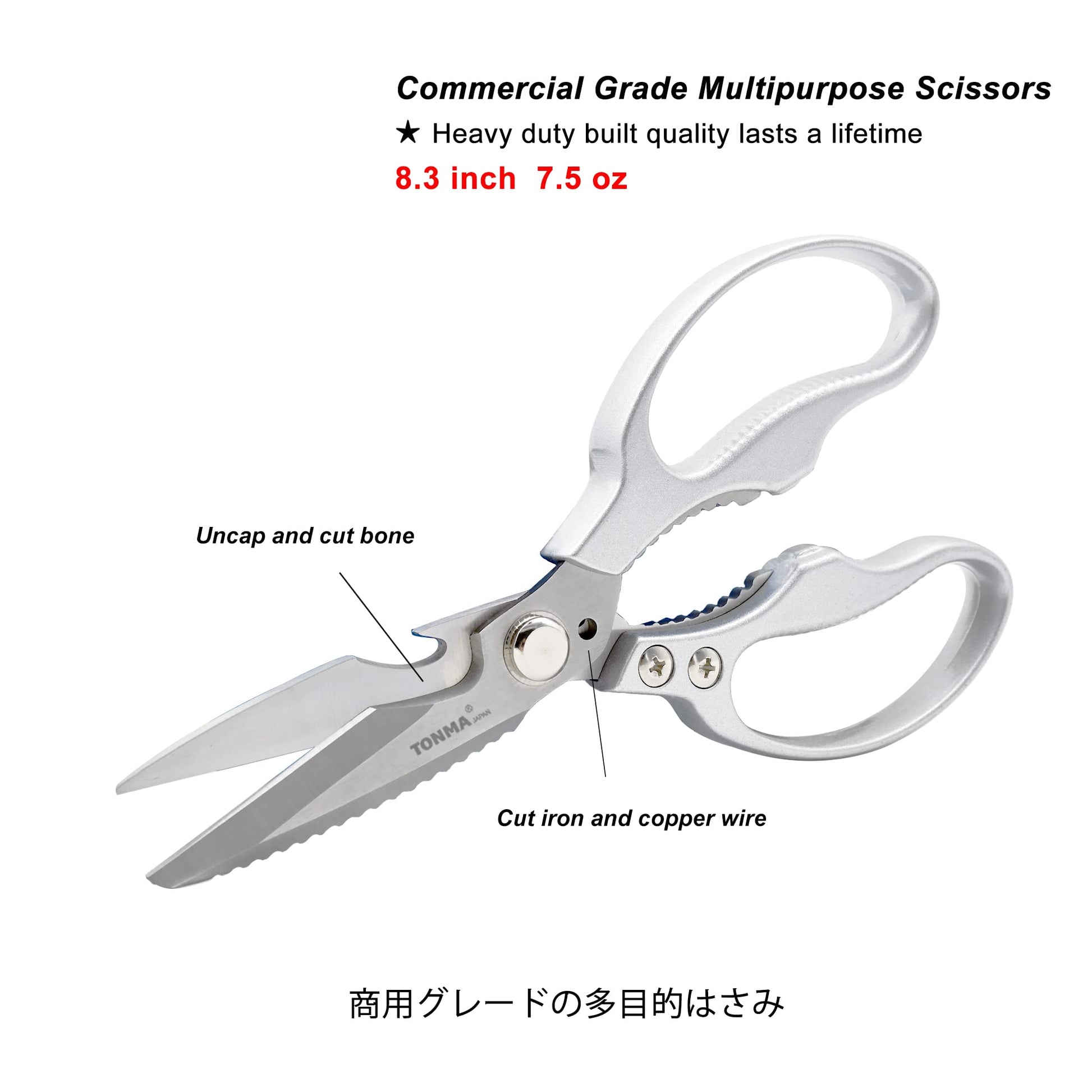 - [ RESTAURANT GRADE KITCHEN SHEARS ] - The blades of kitchen shears heavy duty powerful are made of high-strength Japanese SK4 heavy duty stainless steel (4mm blades thickness, HRC: 60±1), the TONMA multipurpose kitchen scissors all-purpose have heavy-duty built quality lasts a lifetime, great as herb scissors, cooking food scissors, utility scissors, craft scissors, tailor fabric scissors.